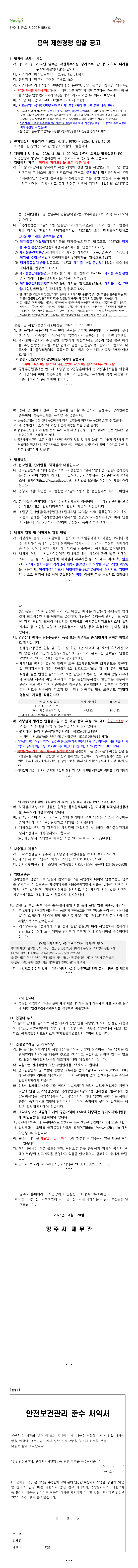2026년 양주권 자원회수시설 정기보수기간 등 미처리 폐기물 위탁처리용역(1권역)(단가) |