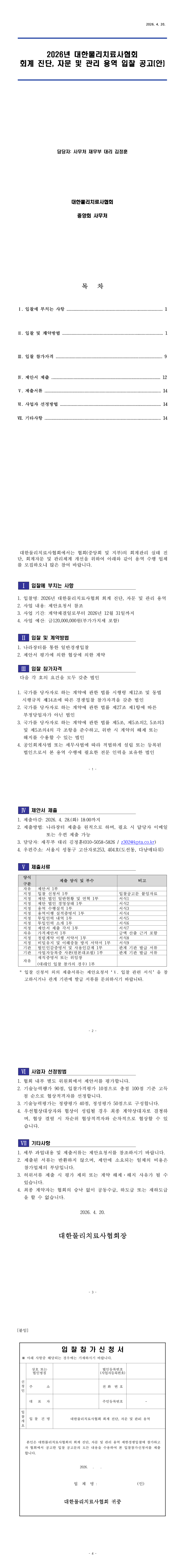 2026년 대한물리치료사협회 회계 진단, 자문 및 관리 용역 |