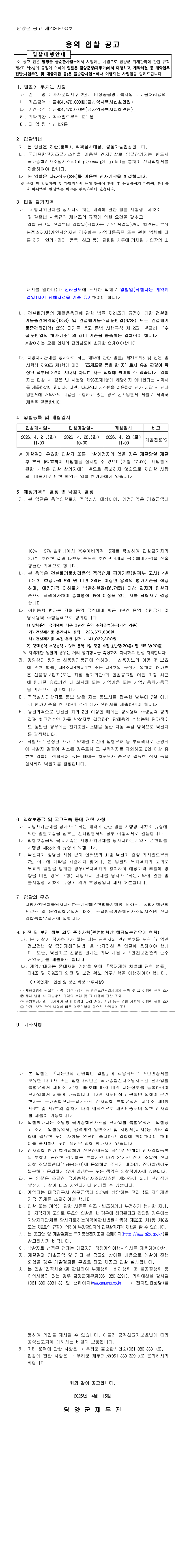 가사문학지구 2단계 비상공급망구축사업 폐기물처리용역(입찰대행) |