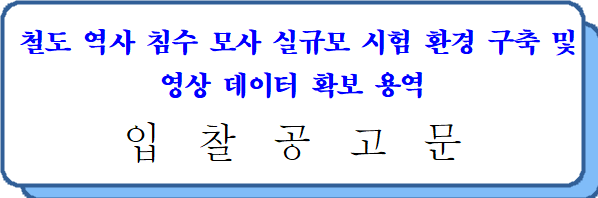 1. 입 찰 명 : 철도 역사 침수 모사 실규모 시험 환경 구축 및 영상 데이터 확보 용역