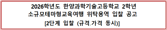 가. 용 역 명 : 2026년도 한양과학기술고등학교 2학년 소규모테마형교육여행 위탁용역
