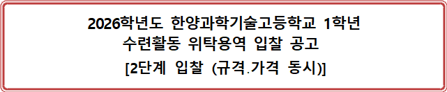 2026학년도 한양과학기술고등학교 1학년 수련회 위탁용역 입찰 공고