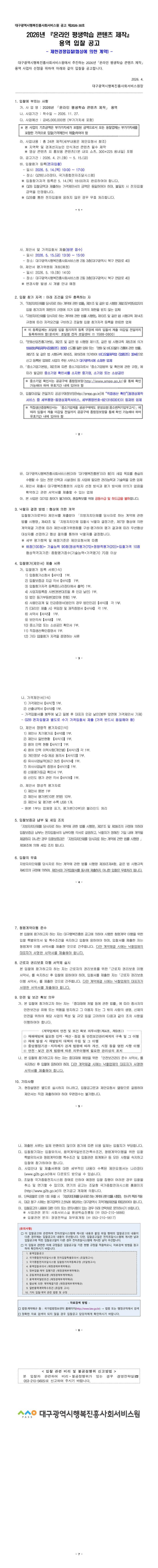 2026년 온라인 평생학습 콘텐츠 제작 용역 입찰 공고 |