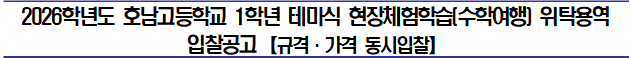 ◦ 2026학년도 호남고등학교 1학년 테마식 현장체험학습(수학여행) 위탁용역 입찰공고