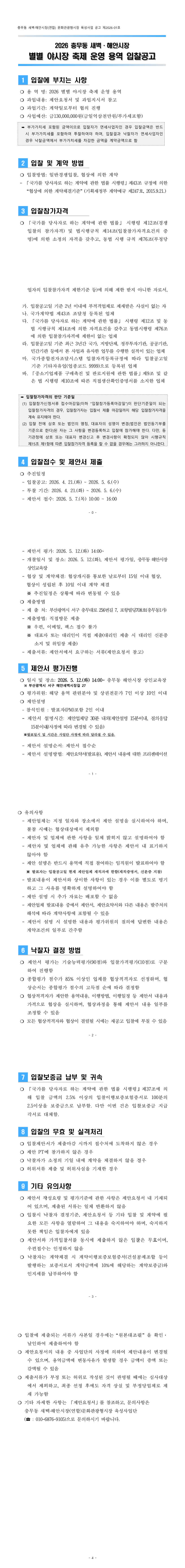 2026년 충무동 새벽해안시장 별별동행야시장 운영용역 입찰공고 |