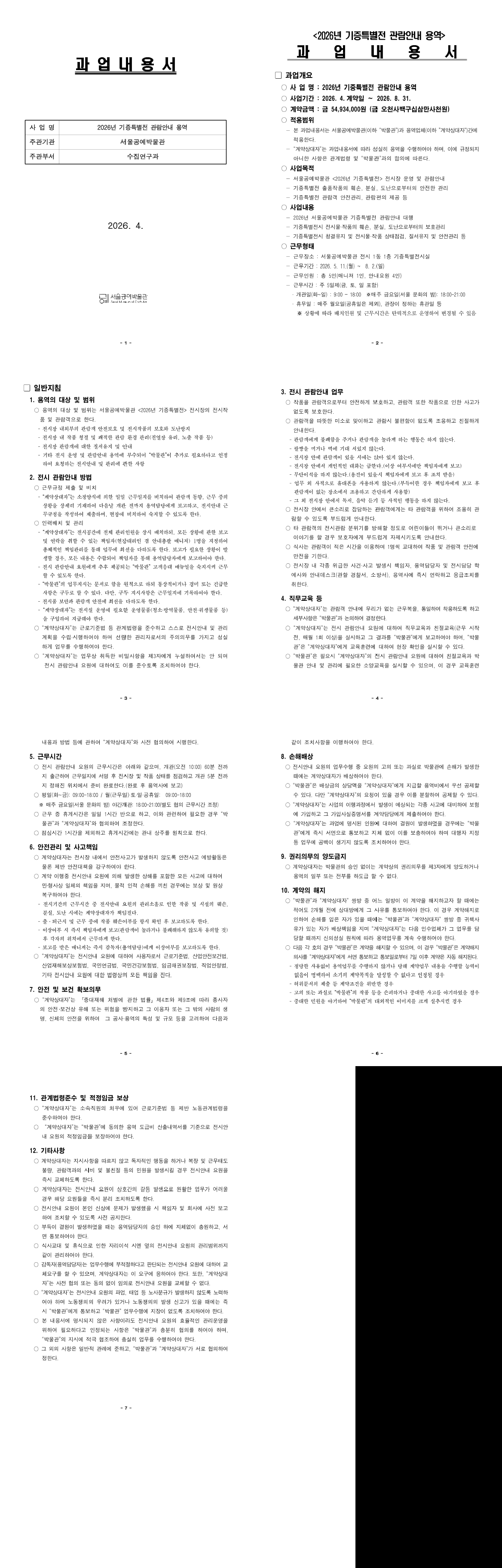 2026년 기증특별전시 관람안내 용역 |