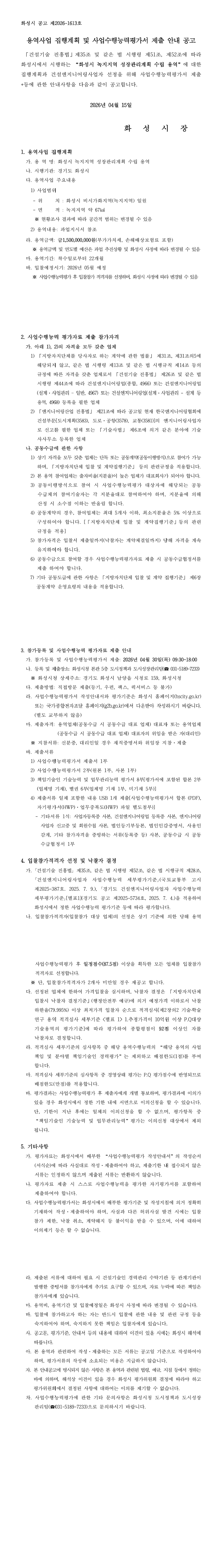 용역사업 집행계획 및 사업수행능력평가서 제출 안내 공고[화성시 녹지지역 성장관리계획 수립 용역] |