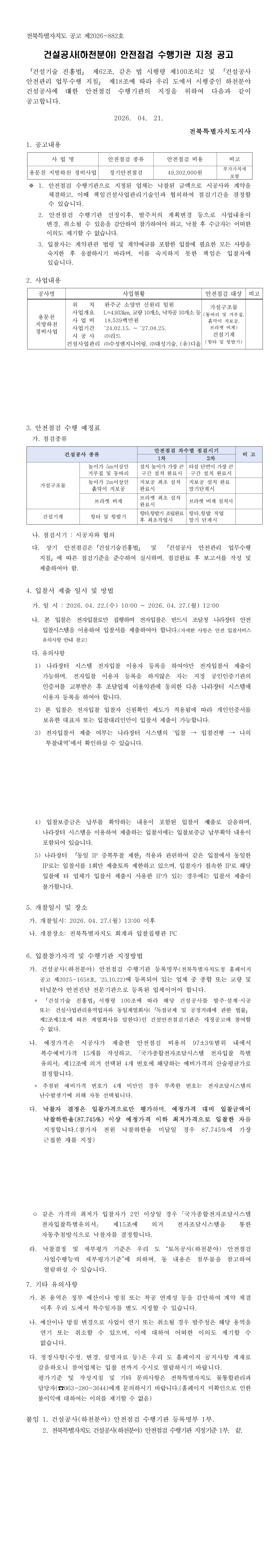 건설공사(하천분야) 안전점검 수행기관 지정(용문천 지방하천 정비사업) |