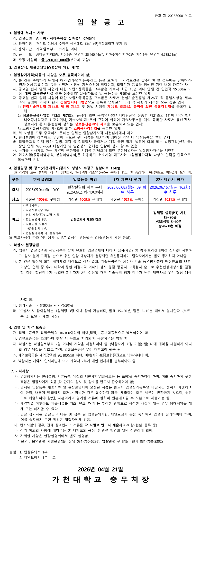 가천대학교 AI타워ㆍ지하주차장 신축공사 CM 용역 |