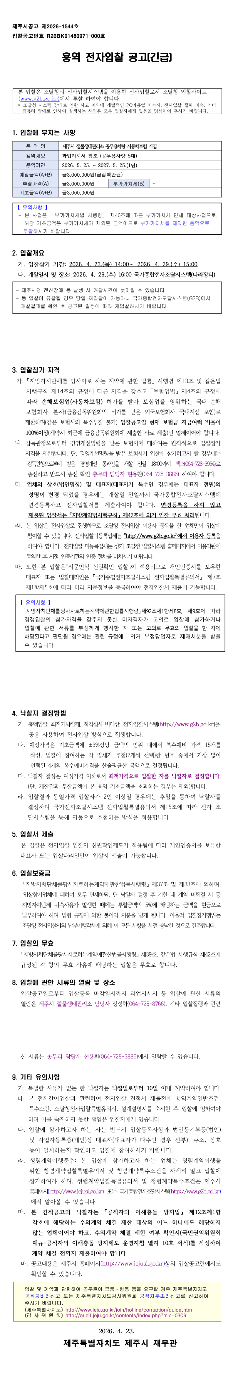 2026년 제주시 절물생태관리소 공무용차량 자동차보험 가입 |
