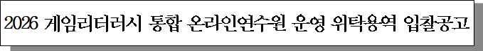 ㅇ 입찰건명 : 2026 게임리터러시 통합 온라인연수원 운영 위탁용역