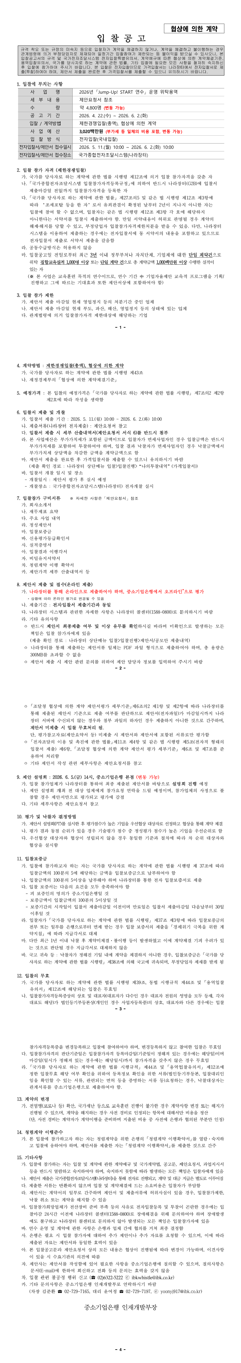 2026년 IBK기업은행「Jump-Up! START 연수」운영 위탁용역 |