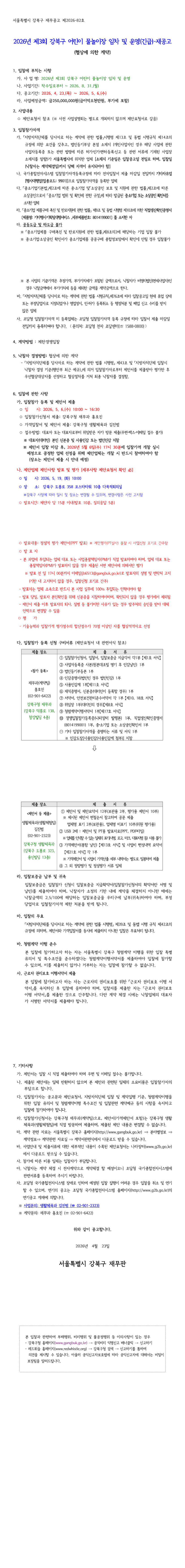 2026년 제3회 강북구 어린이 물놀이장 임차 및 운영 용역 |