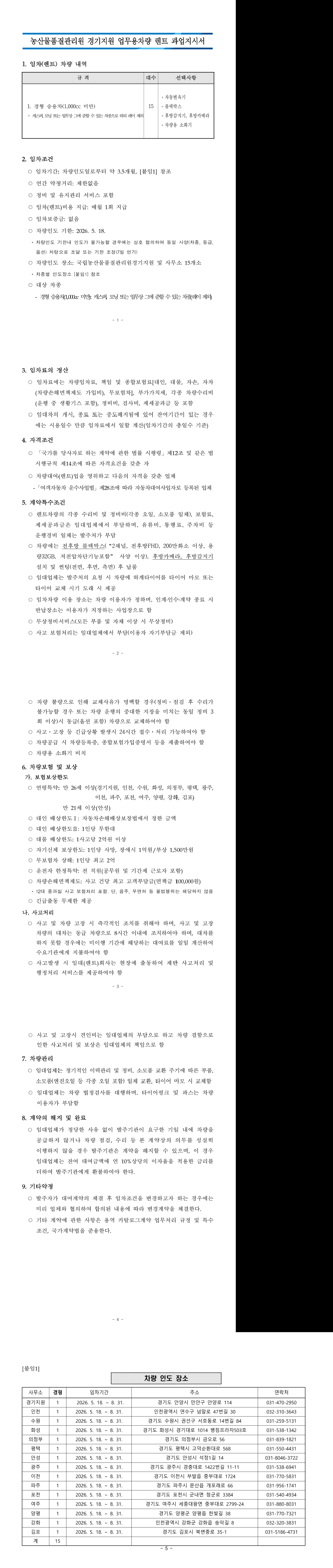 업무용 차량 임차(국립농산물품질관리원 경기지원) |