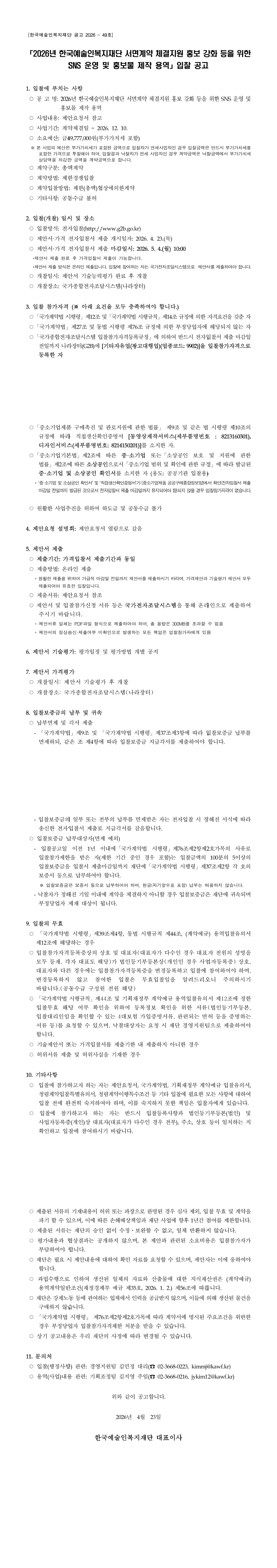 2026년 한국예술인복지재단 서면계약 체결지원 홍보 강화 등을 위한 SNS 운영 및 홍보물 제작 용역 |