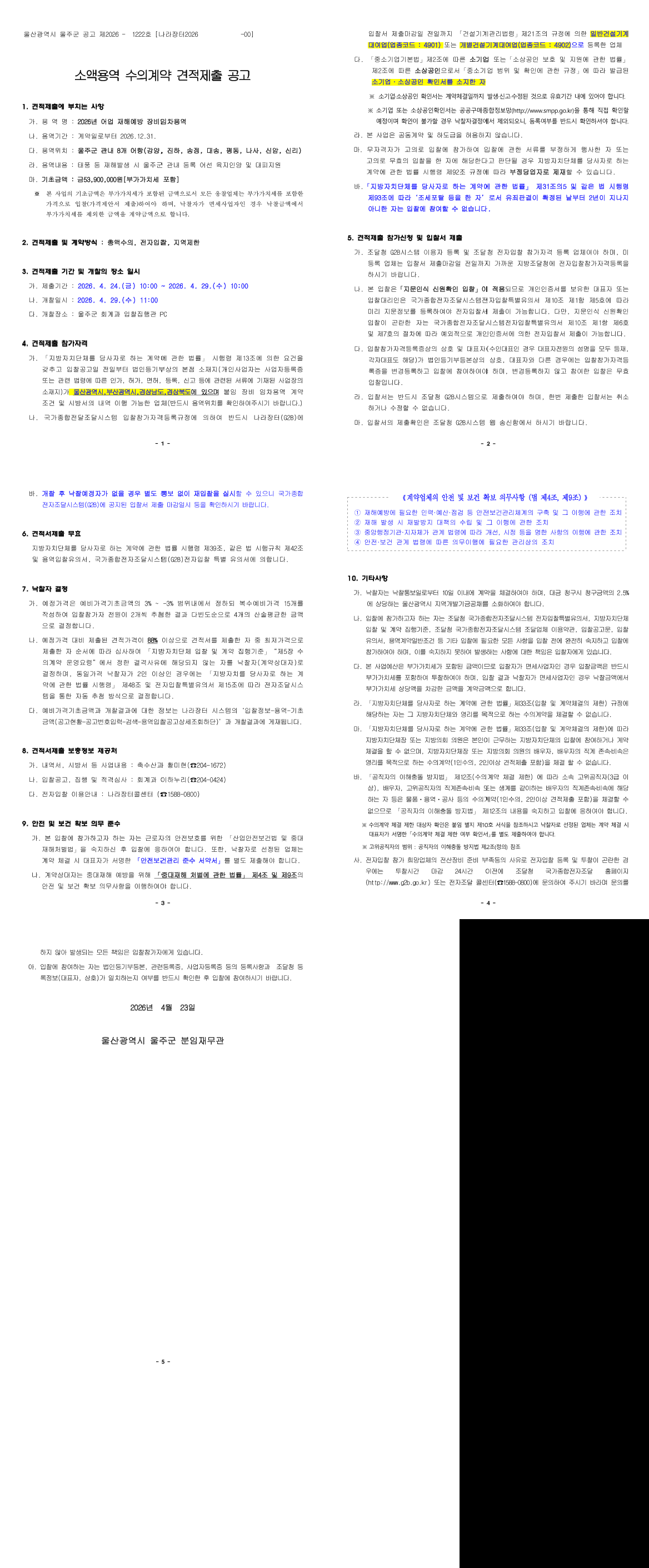 2026년 어업 재해예방 장비임차용역 소액용역 수의계약 견적제출 공고 |