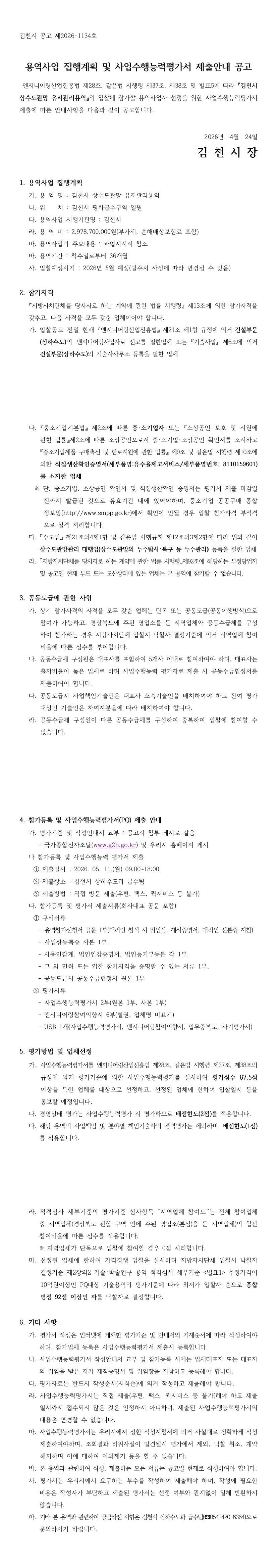 김천시 상수도관망 유지관리용역(사업수행능력평가서 제출 안내) |