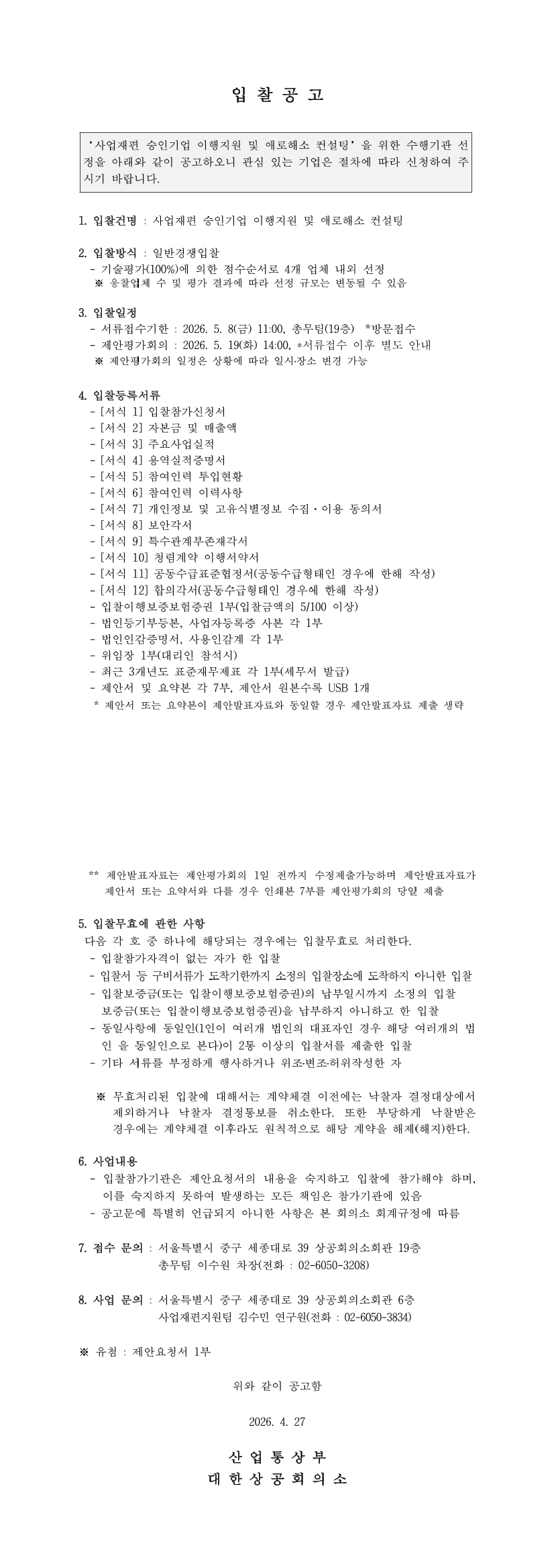 사업재편 승인기업 이행지원 및 애로해소 컨설팅 |