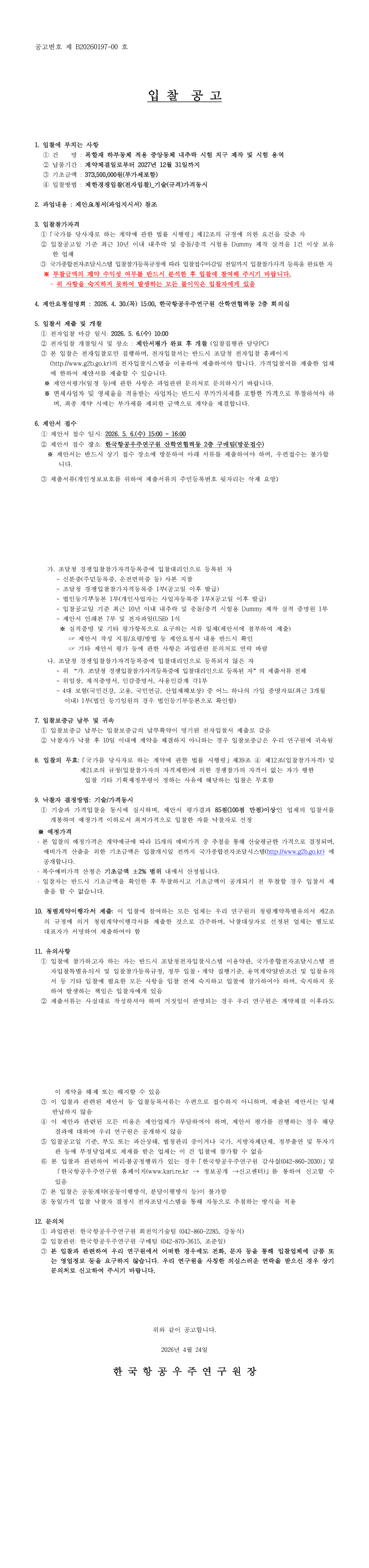 복합재 하부동체 적용 중앙동체 내추락 시험 치구 제작 및 시험 용역 |