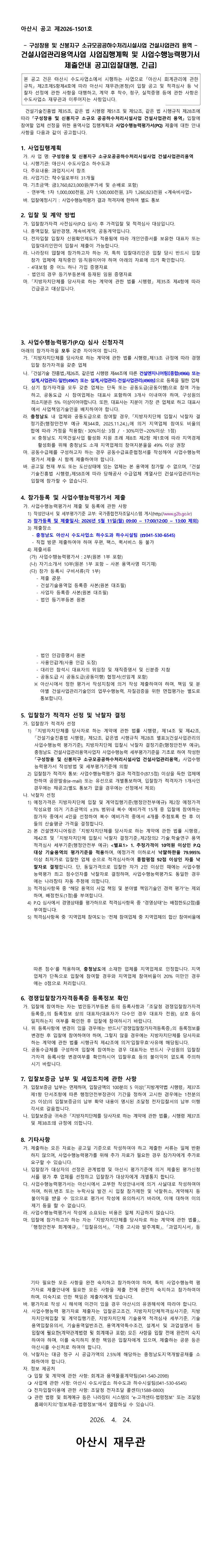 구성창용 및 신봉지구 소규모 공공하수처리시설사업 건설사업관리 용역 사업수행능력평가서 제출 안내 공고(긴급) |