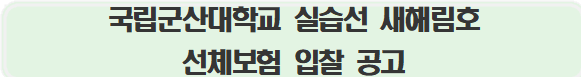 - 입찰집행 및 계약체결 : 국립군산대학교 선박실습운영센터(☏063-469-1724)
