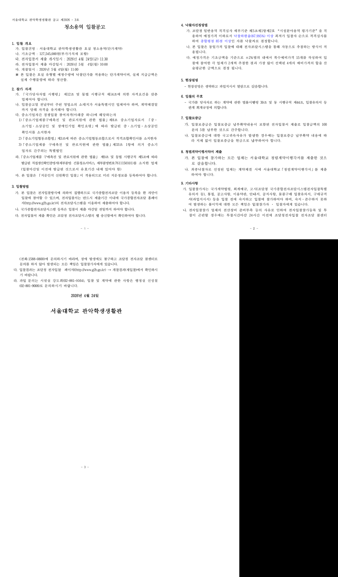 서울대학교 관악학생생활관 호실 청소용역(단가계약) |