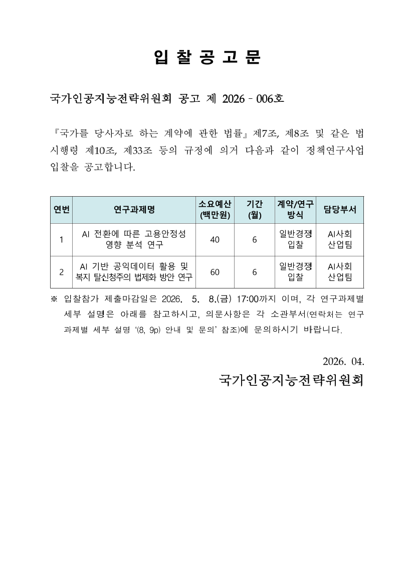 AI 전환에 따른 고용안정성 영향 분석 연구 용역 |