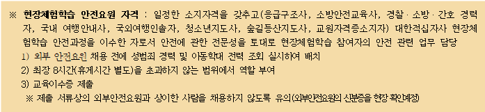 학생들의 단체 활동을 하기에 우려되는 상황이 발생될 경우 수련활동을 취소할 수 있음.