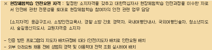 ▪ 인솔교사: 2박 7식(숙식비만 포함)