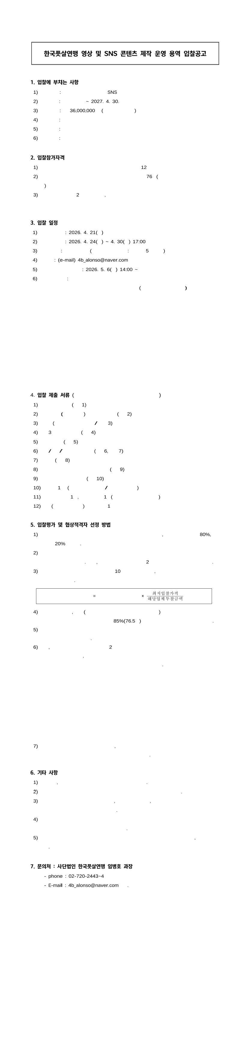 한국풋살연맹 영상 및 SNS 콘텐츠 제작 운영 용역 입찰공고 |