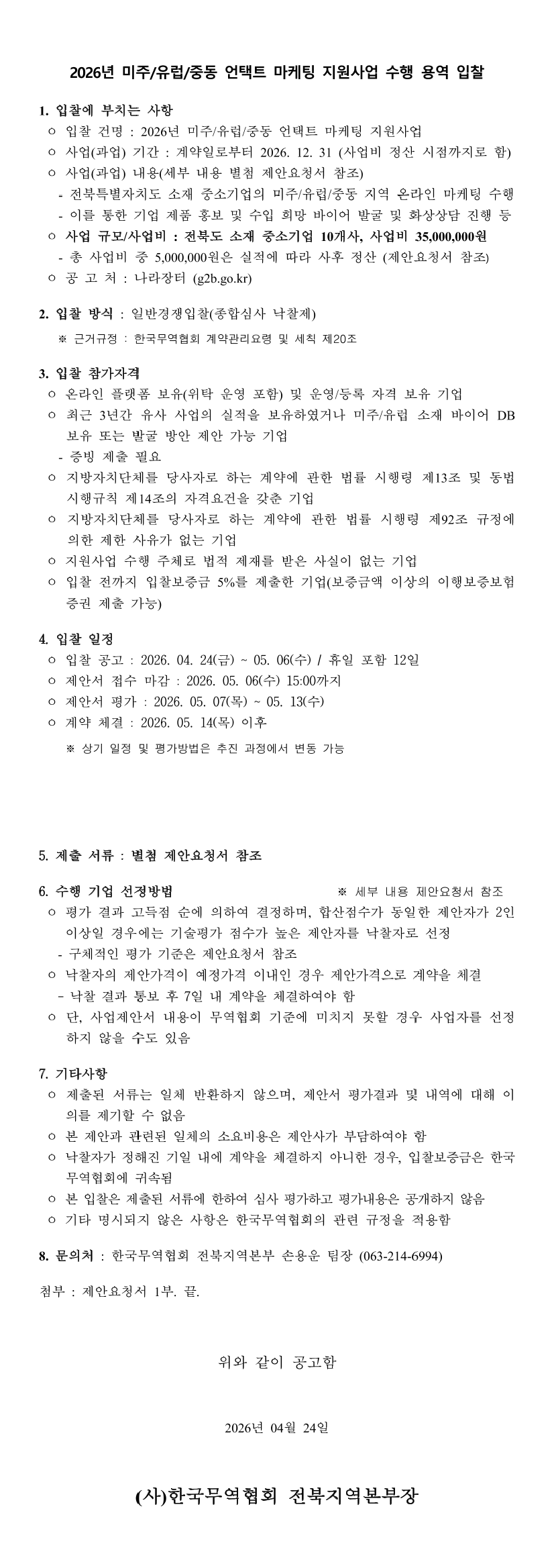 2026년 미주/유럽/중동 언택트 마케팅 지원사업 |