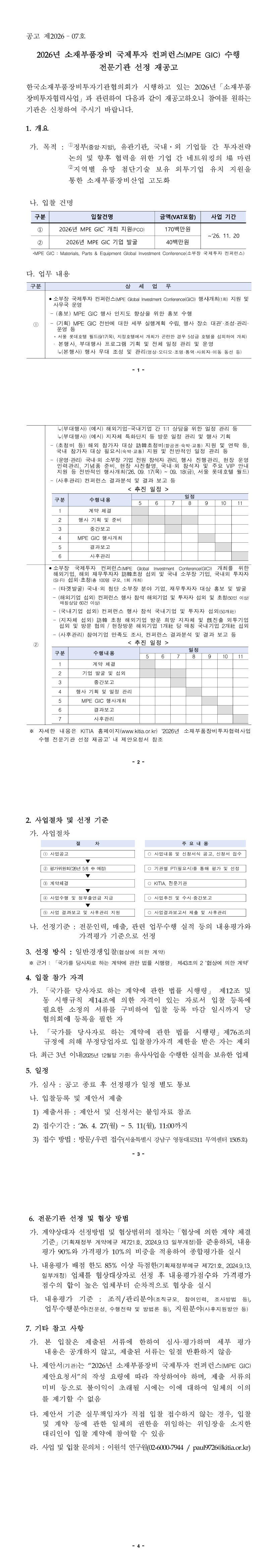 2026년 소재부품장비 국제투자 컨퍼런스(MPE GIC) 수행 전문기관 선정 재공고 |