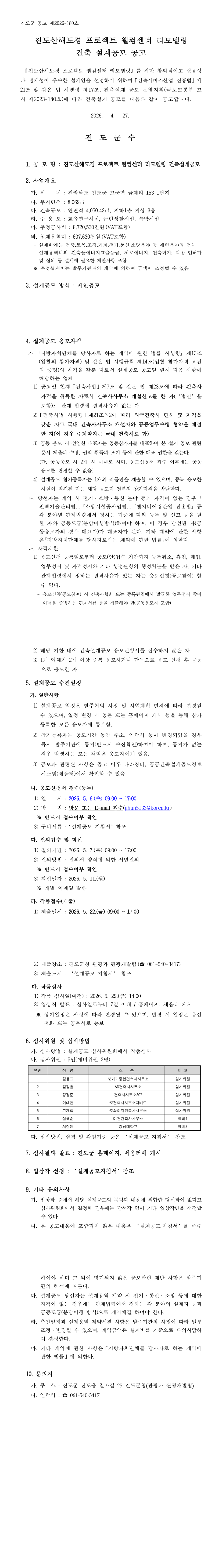 진도산해도경 프로젝트 웰컴센터 리모델링 건축 설계공모 |
