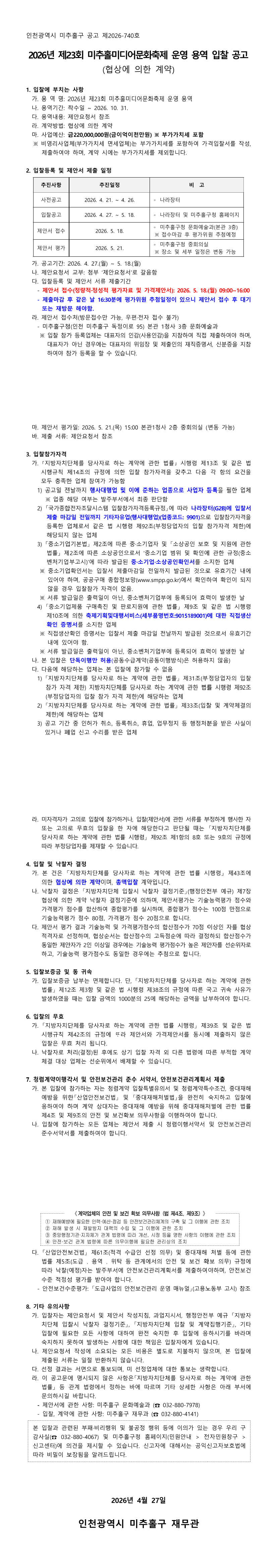 2026년 제23회 미추홀미디어문화축제 운영 용역(협상에 의한 계약) |