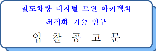 1. 입 찰 명 : 철도차량 디지털 트윈 아키텍쳐 최적화 기술 연구