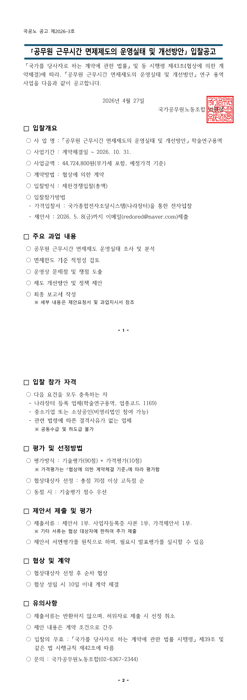 공무원 근무시간 면제제도의 운영실태 및 개선방안 관련 정책연구 |