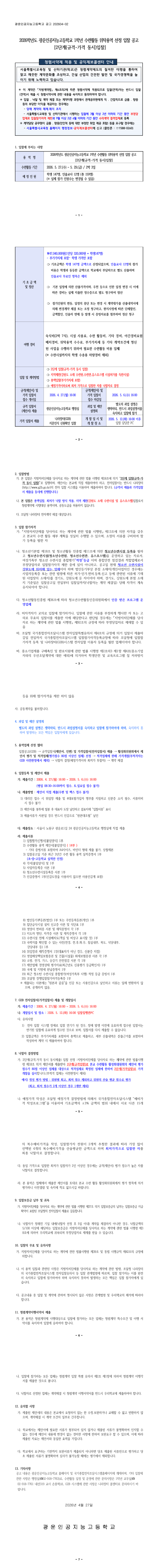 광운인공지능고등학교 2026학년도 1학년 수련활동 위탁용역 |
