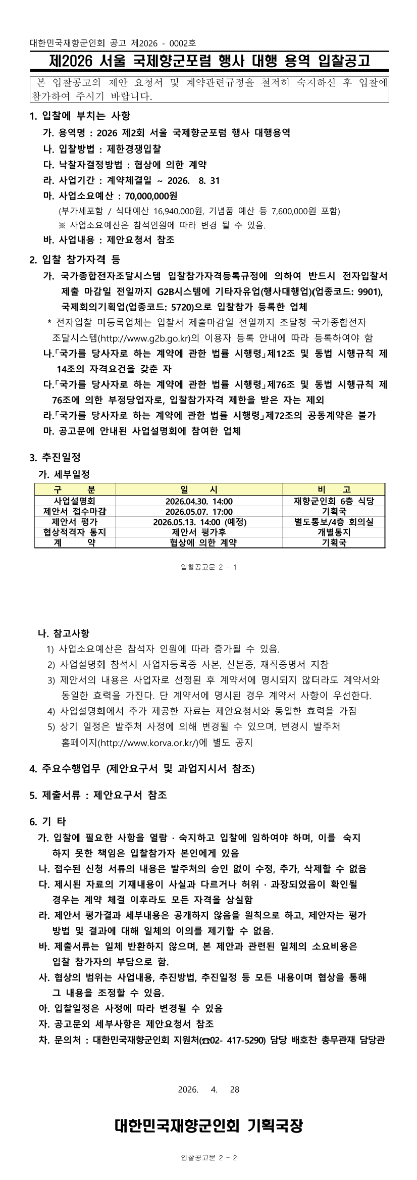 제2회 서울 국제향군포험 행사 기획사 선정 |
