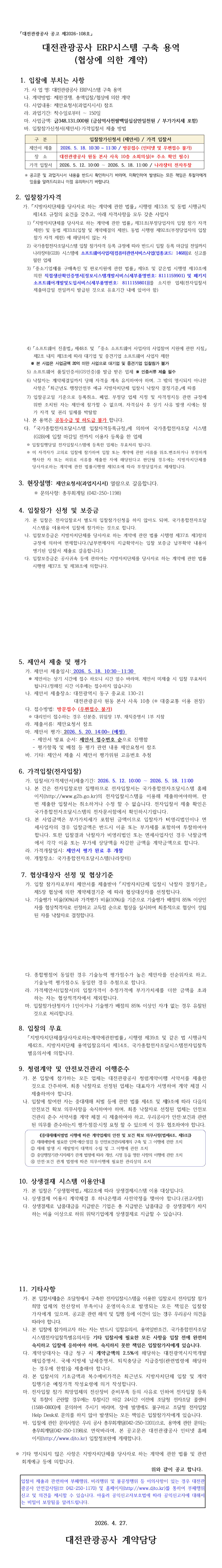 대전관광공사 ERP시스템 구축 용역 |