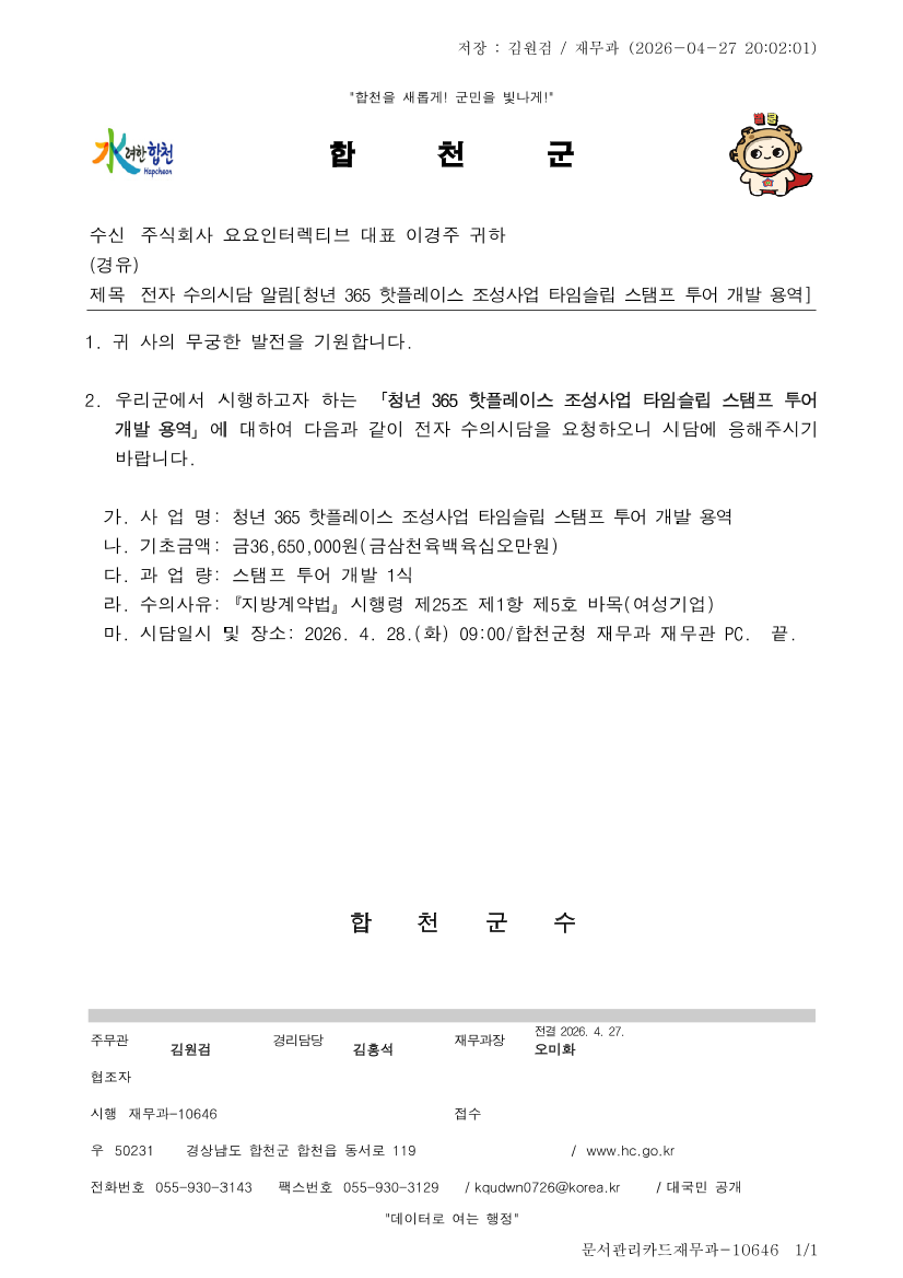 청년 365 핫플레이스 조성사업 타임슬립 스탬프 투어 개발 용역 |