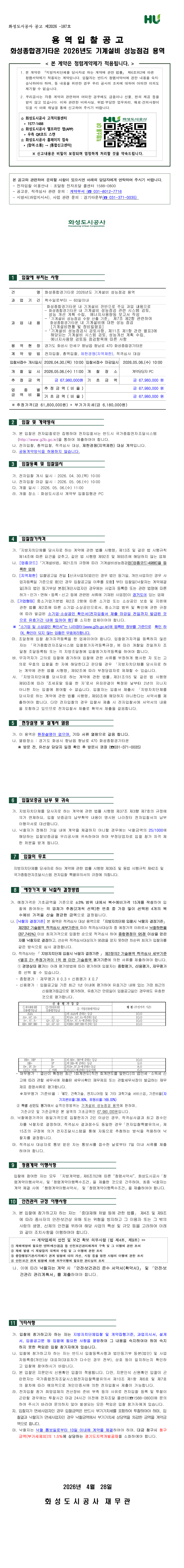 화성종합경기타운 2026년도 기계설비 성능점검 용역 |