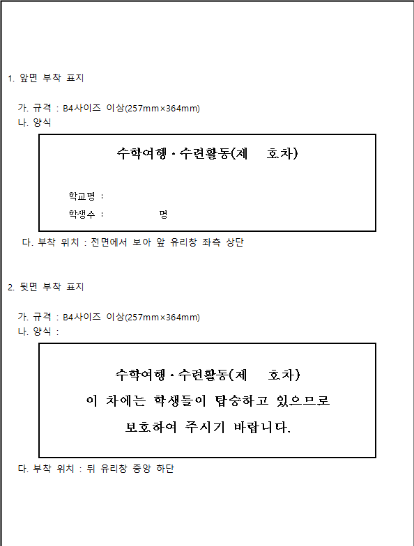 체험학습 출발 전 차량 안전 점검표