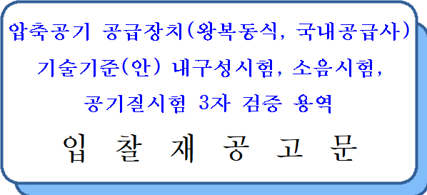 1. 입 찰 명 : 압축공기 공급장치(왕복동식, 국내공급사) 기술기준(안) 내구성시험,
