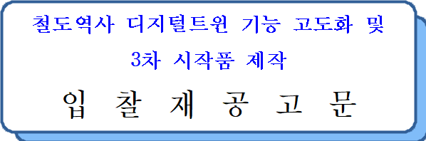 1. 입 찰 명 : 철도역사 디지털트윈 기능 고도화 및 3차 시작품 제작
