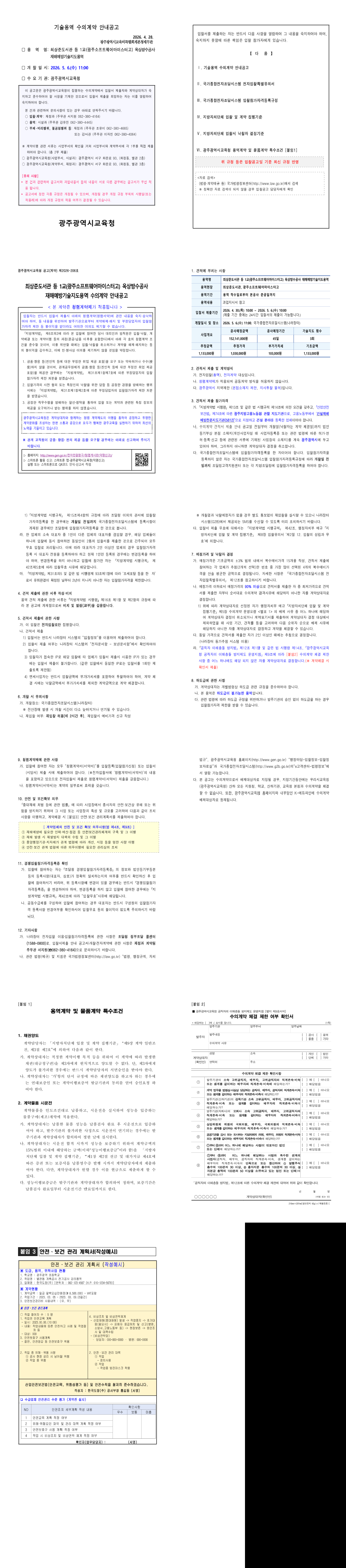 최상준도서관 등 1교(광주소프트웨어마이스터고) 옥상방수공사 재해예방기술지도용역 수의계약 안내공고 |