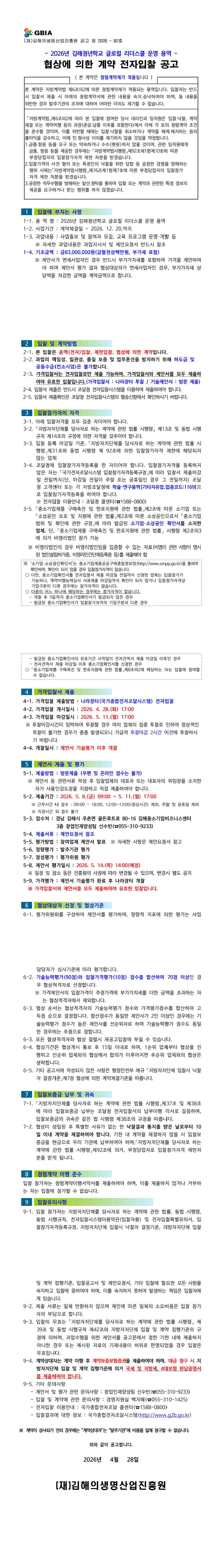 2026년 김해청년학교 글로컬 리더스쿨 운영 용역 |