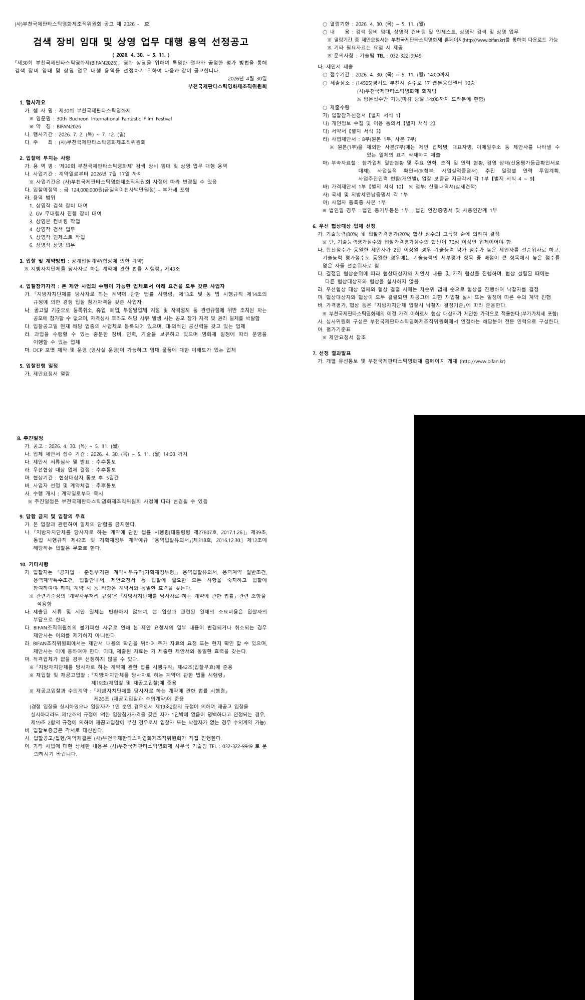 제30회 부천국제판타스틱영화제 검색 장비 임대 및 상영 업무 대행 용역 |