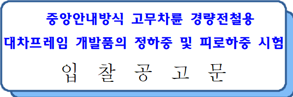 가. 입 찰 명 : 중앙안내방식 고무차륜 경량전철용 대차프레임 개발품의 정하중 및