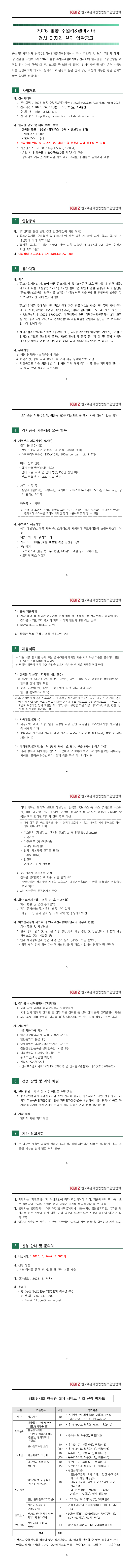 2026 홍콩 주얼리 & 젬아시아 수출 컨소시엄 전시 디자인 설치 입찰공고 |