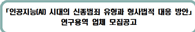 ‘인공지능(AI) 시대의 신종범죄 유형과 형사법적 대응 방안’에 대한 시행계획을 아래와 같이 공고합니다.